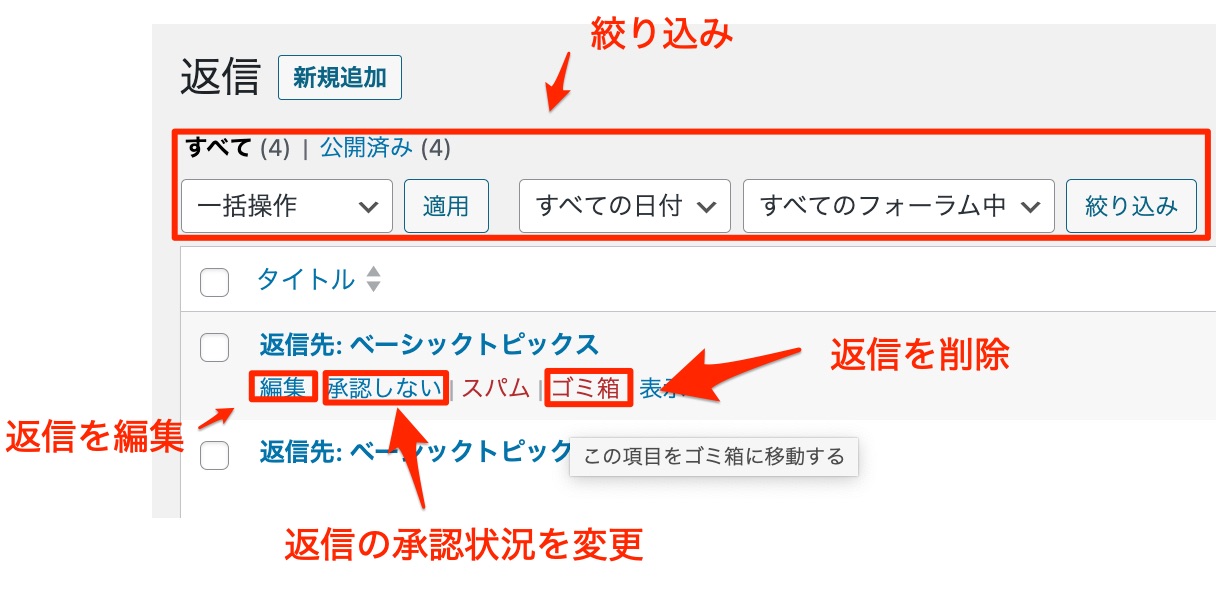 フォーラムは、トピックと返信(コメント)からできています。